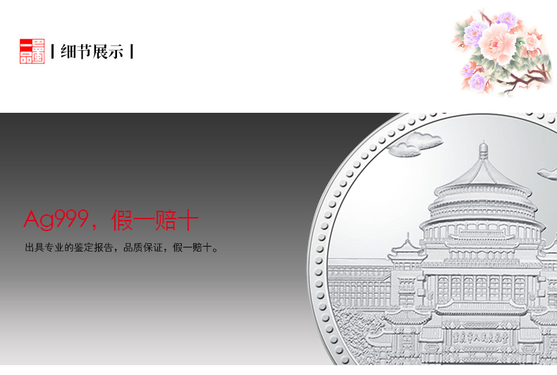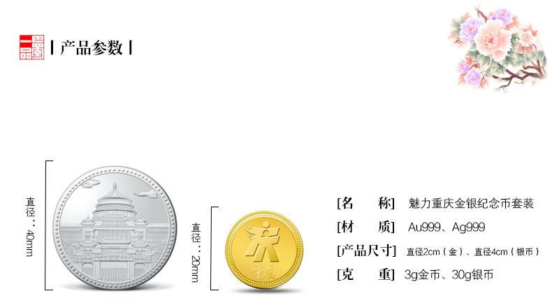 - 商品規格 金幣直徑2cm,克重3g; 銀幣直徑4cm,克重30g.