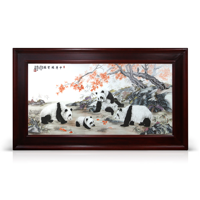 【產品簡介】四川被稱為“大熊貓的故鄉”,在這塊美麗的土地上棲息著我國85%的珍稀大熊貓。它憨態可掬、溫柔可親的形態深受大家喜愛。本品選自景德鎮精品陶瓷,由知名畫師親手繪制后燒制而成,通過工藝師之手生動的刻畫出活潑靈動的熊貓融入在人與自然和諧相處的畫面,傳達出無限溫馨與喜悅,給人富足、平和、幸福的觀感,實為一副難得的工藝精品,具有極高的饋贈與收藏價值。