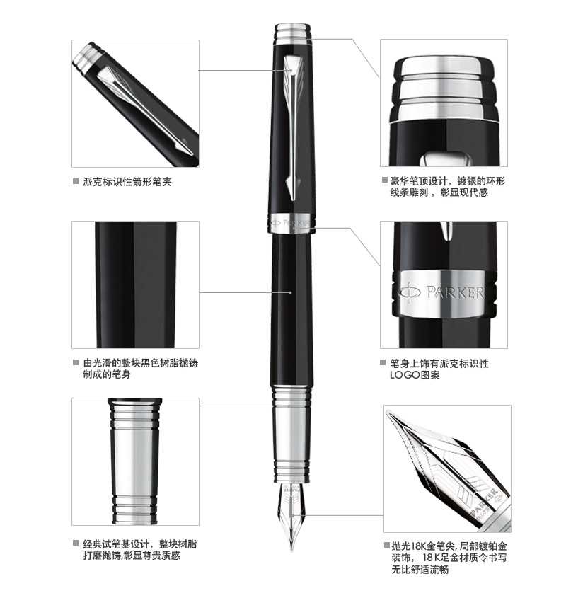 產品名稱派克首席純黑麗雅白夾寶珠筆