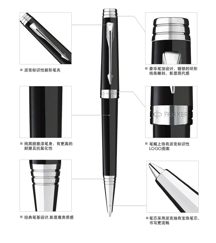 產品名稱派克首席純黑麗雅白夾原子筆